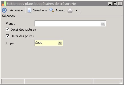 (Sage FRP 1000 Suite Financière) Menu Budget > Paramètres > Edition des plans budgétaires de trésorerie