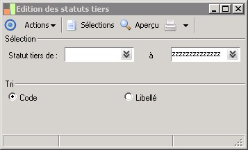 (Sage FRP 1000 Suite Financière) Menu Processus Opérationnels > Paramètres > Tiers > Edition des statuts tiers