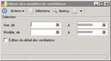 (Sage FRP 1000 Suite Financière) Menu Comptabilité > Fichiers de base > Ventilations analytiques > Edition des modèles de ventilation