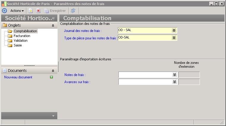 Un descriptif d'importation d'écritures pour les notes de frais peut être rattaché au paramètre des notes de frais. |