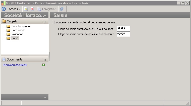 Cette information permet d'autoriser une plage de saisie pour les avances et les notes de frais. Il s'agit du nombre de jours après la date système pour lesquels il sera possible de saisir une avance ou une note de frais. |