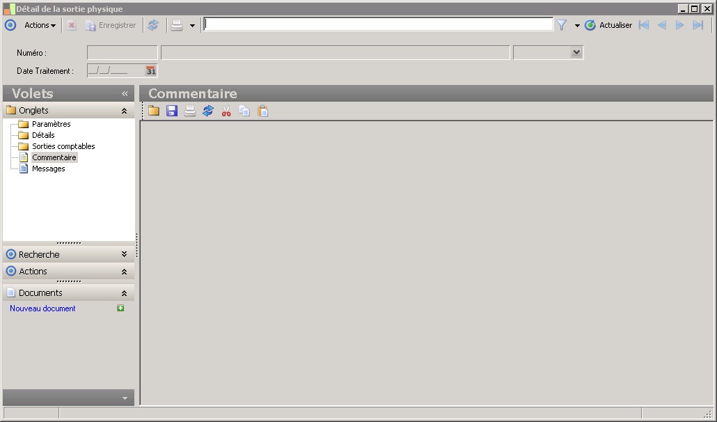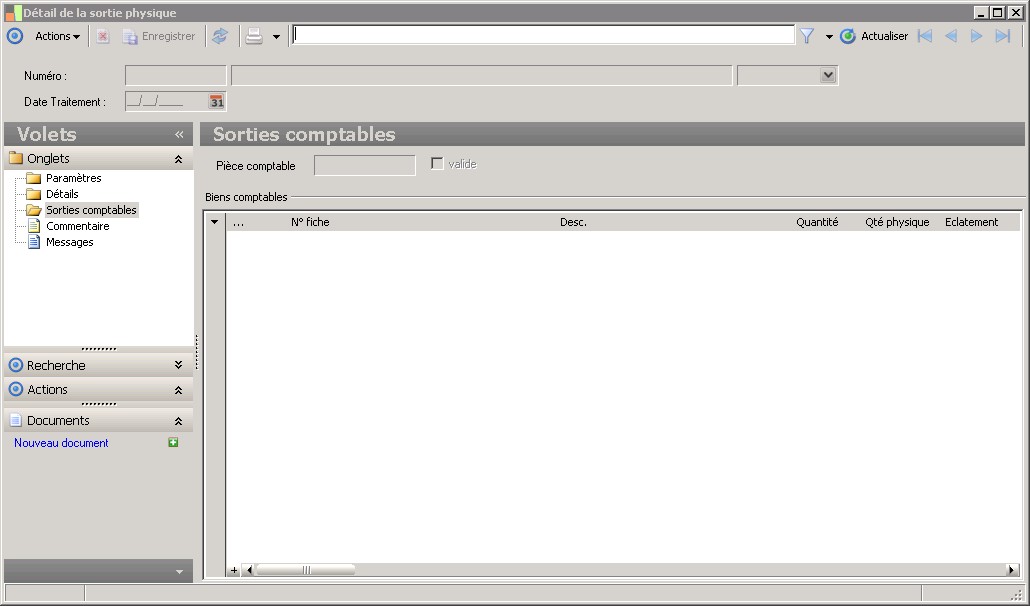 Cette zone indique que le bien comptable à sortir fera l'objet d'un éclatement car sa quantité est supérieure à la quantité du bien physique associé. |