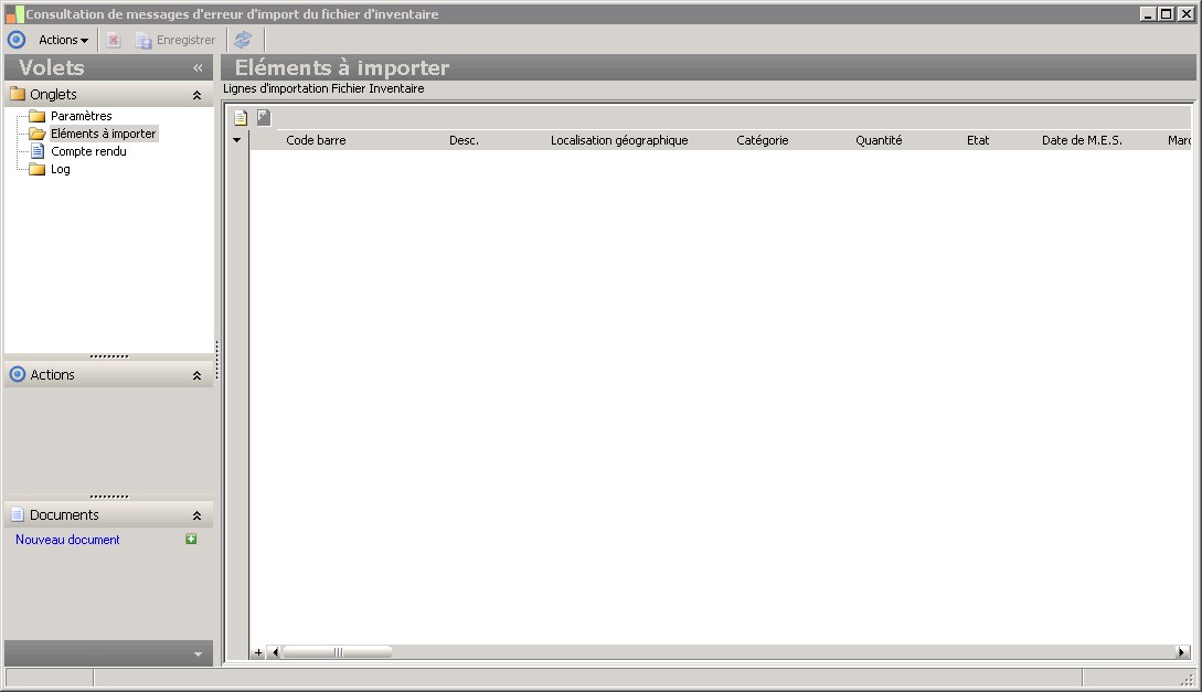 (Sage FRP 1000 Comptabilité) Menu Immobilisations > Initialisation > Import du suivi physique > Consultation de messages d'erreur d'import du fichier d'inventaire
