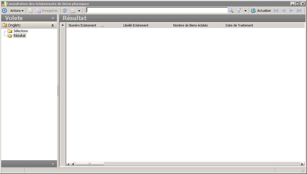 (Sage FRP 1000 Comptabilité) Menu Immobilisations > Suivi physique > Eclatement > Consultation des éclatements de biens physiques