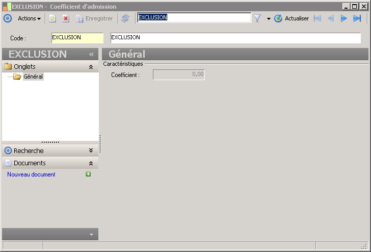 (Sage FRP 1000 Comptabilité) Menu Notes de Frais > Paramètres > Comptabilité générale > Coefficient d'admission
