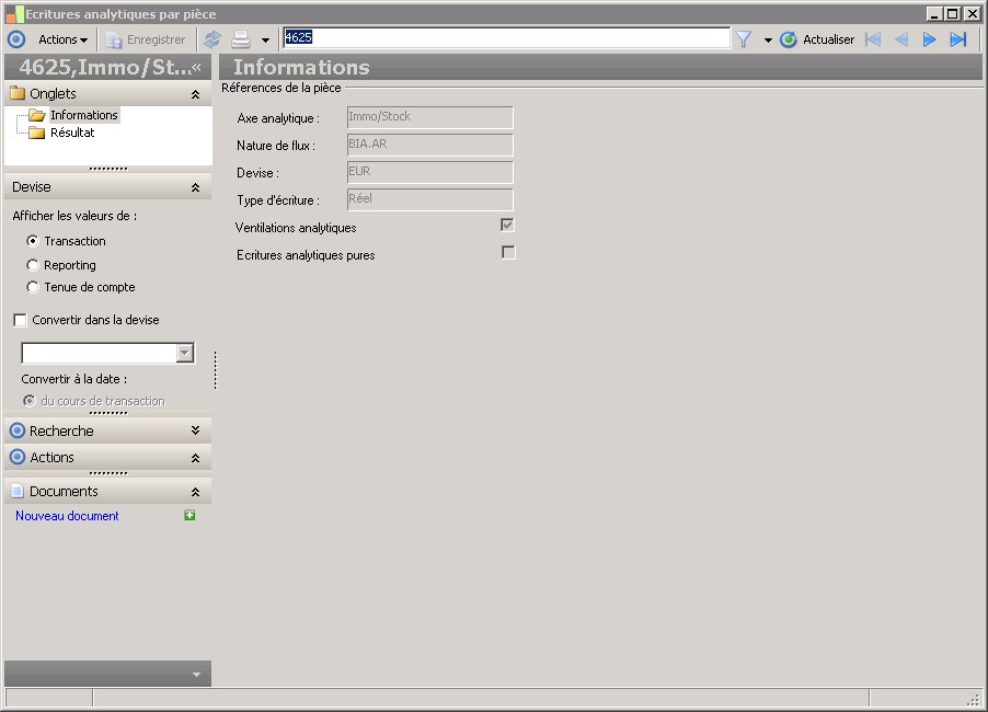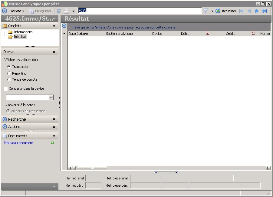 Cette information représente la devise de saisie de la pièce analytique. |