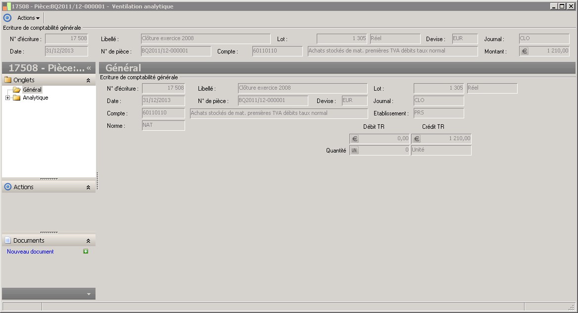 La ventilation à 100 % des natures non supplétives (natures de flux ayant des comptes de comptabilité générale rattachés) a 2 incidences :1- Dans le cas d'une ventiliation d'une écriture de comptabilité générale, elle implique que la validation des écritures analytiques de la pièce ne peut être effective que si la sommation de ses écritures est égale au montant de l'écriture de comptabilité générale.2- Dans le cas d'une écriture analytique pure portant sur une nature non supplétive, elle oblige que la pièce analytique soit équilibrée en débit-crédit (déversé-reçu) c'est-à-dire que le solde pièce soit nul.Cette restriction permet que le solde de la nature de flux soit le reflet de la comptabilité générale. En effet, seules les natures supplétives peuvent enregistrer des écarts de valorisation par rapport à la comptabilité générale.Attention : Un axe qui n'est pas ventilable à 100% dès l'origine ne peut plus le devenir. |