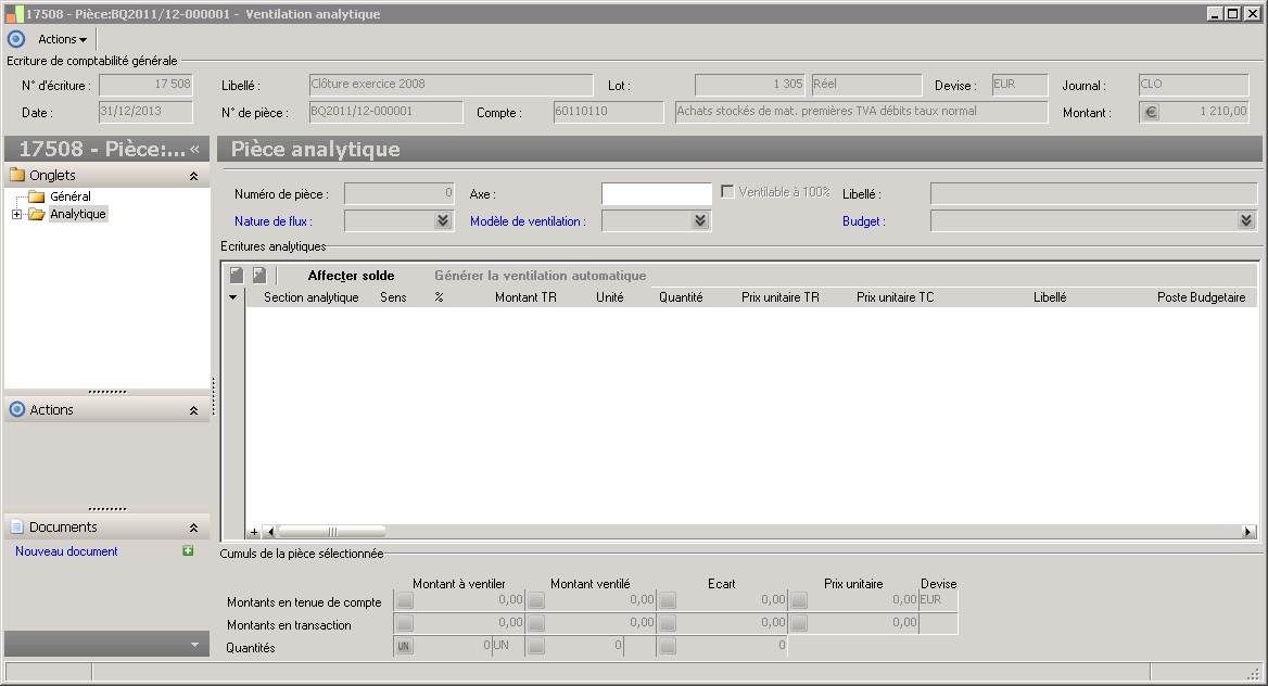 Ecritures analytiques |