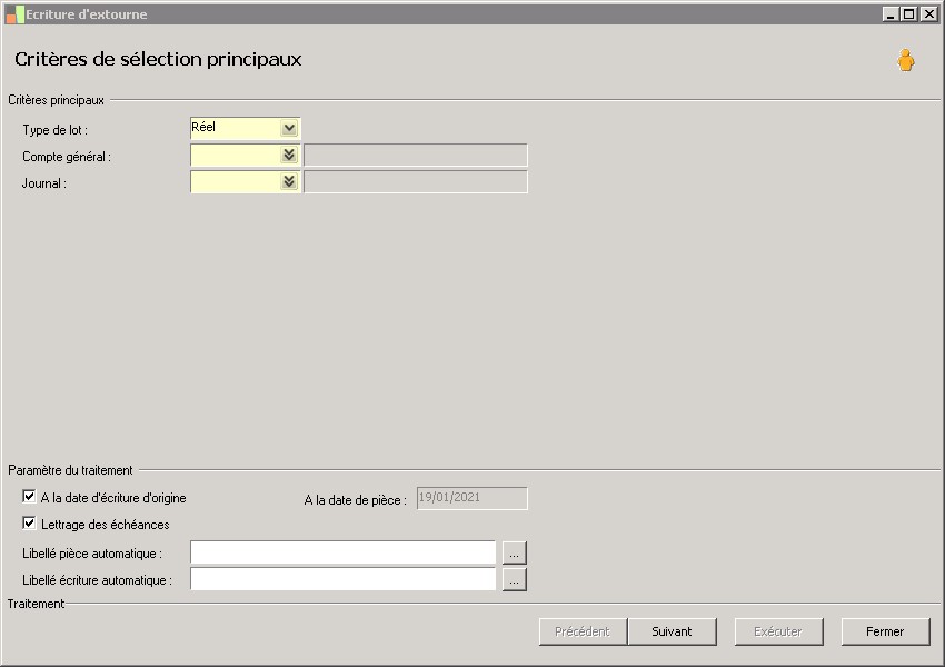Cette sélection précise le type de lot contenant l'écriture d'extourne : Réel ou simulation. |