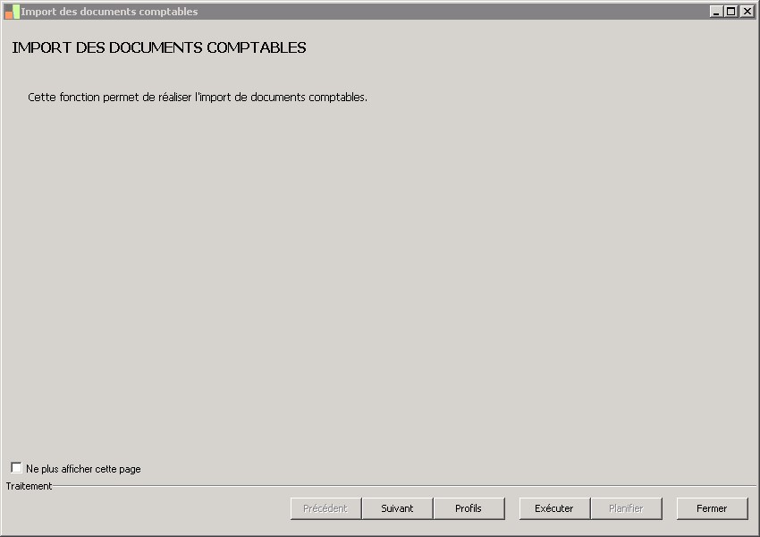 (Sage FRP 1000 Comptabilité) Menu Immobilisations > Initialisation > Import du suivi comptable > Import des documents comptables