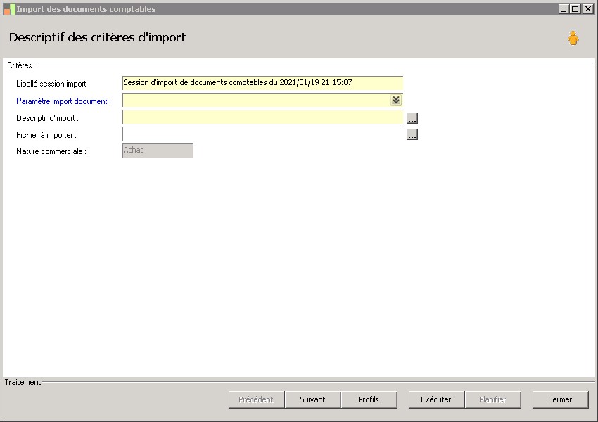 Vous devez sélectionner un paramètre import pour pouvoir procéder au traitement. |