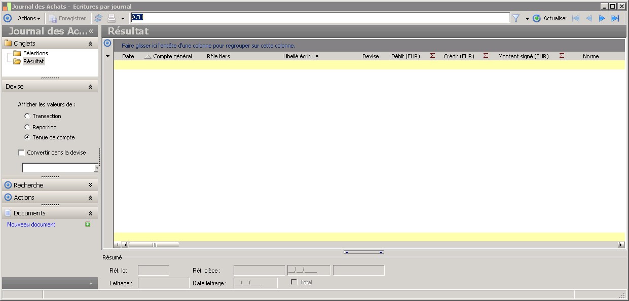 (Sage FRP 1000 Comptabilité) Menu Comptabilité > Générale > Interrogations / consultations > Ecritures par journal
