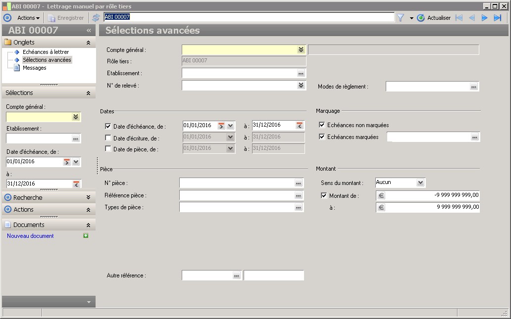 Permet d'effectuer une sélection des échéances à lettrer en fonction d'une fourchette de dates de pièce. |