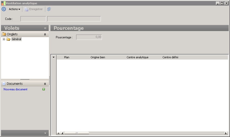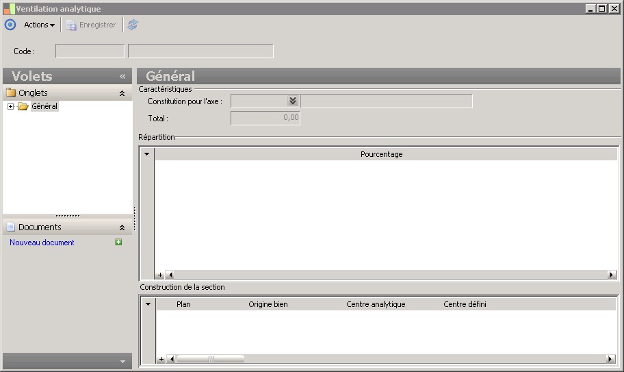 Lors de la construction de la section dans le cadre d'une ventilation analytique, il est possible de sélectionner un centre analytique du plan analytique correspondant. |