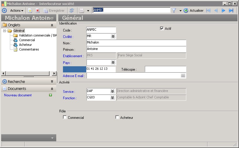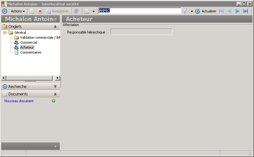 Cochez cette zone pour indiquer que l'employé occupe la fonction d'acheteur , son nom est accessible en :consultation des acheteursfiche fournisseursaisie des pièces d'achatsaffectation des acheteurs |