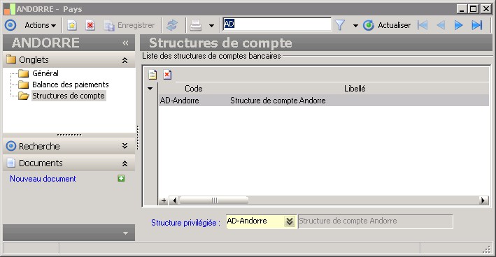Liste des structures de comptes bancaires