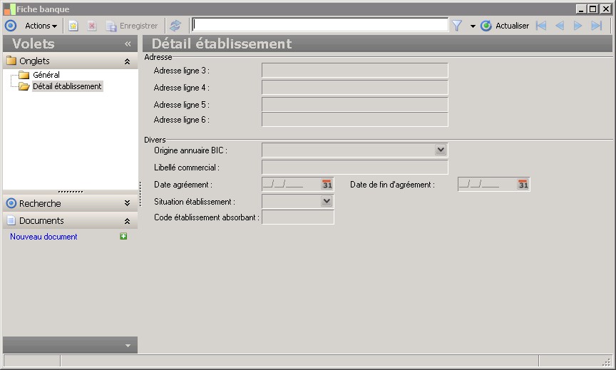 (Sage FRP 1000 Comptabilité) Menu Banque Paiement > Paramčtres > Banques > Fiche banque