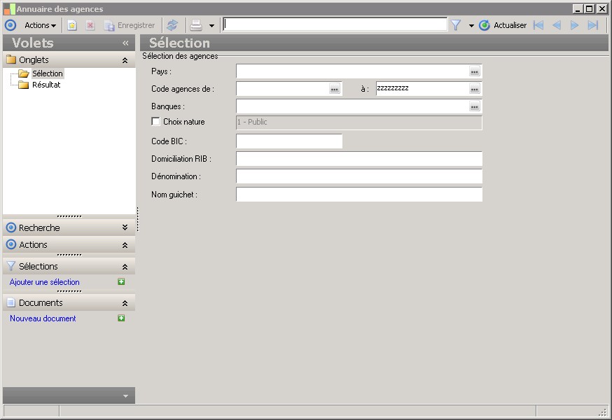 (Sage FRP 1000 Comptabilité) Menu Banque Paiement > Paramètres > Banques > Annuaire des agences