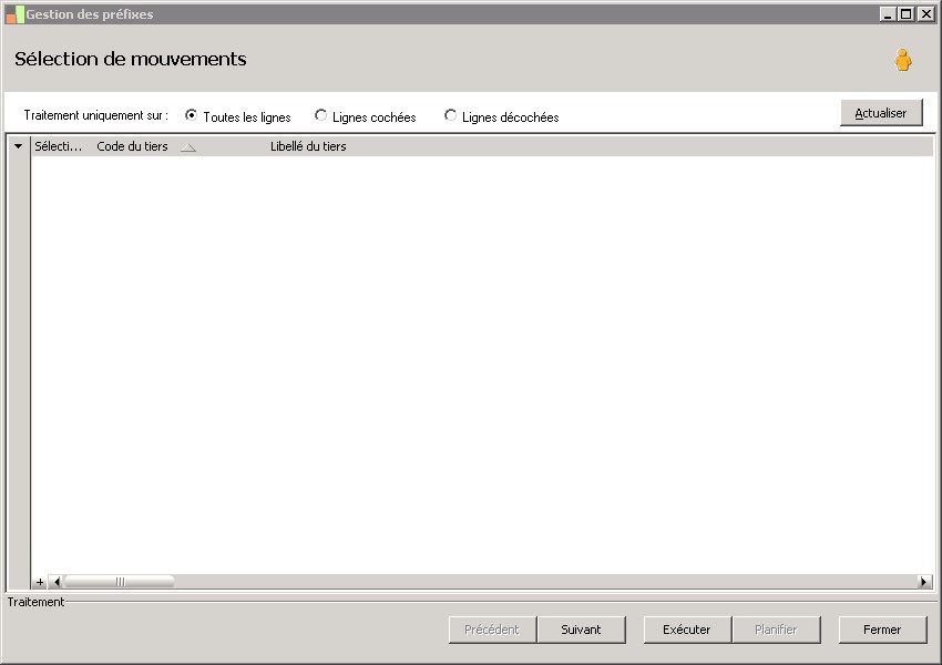 Cette zone permet d'indiquer le préfixe souhaité pour les rôles tiers de type 'Fournisseur' à traiter.Par défaut, le préfixe est repris des paramètres de la fiche société. Sa valeur est modifiable. |