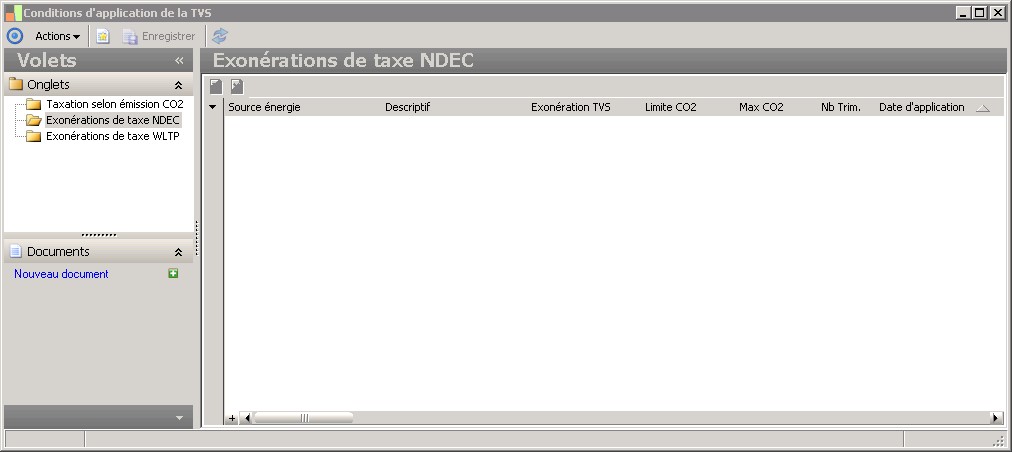Cet attribut permet d'indiquer le taux maximum d'émission de Co2 pour lequel une éxonération de T.V.S. pour la source d'énergie sélectionnée est possible.Cette zone ne sera à saisir que si la case indiquant que l'exonération est fonction d'un taux maximum de Co2 est cochée. |