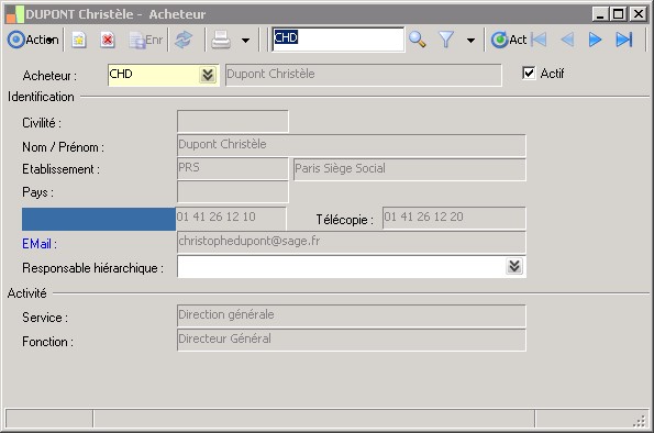 Enregistrez dans cette zone le nom du responsable hiérarchique de la personne en cours de saisie. |