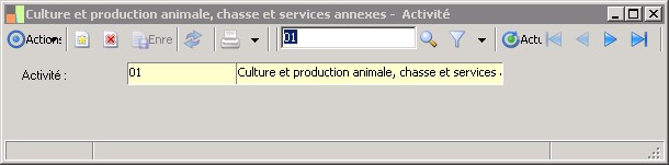 Le code permet d'identifier de manière unique une activité.Cette notion est reprise dans la fiche Société et dans la fiche Tiers. |