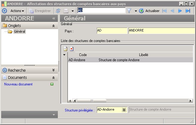Avant de réaliser toute affectation, il est nécessaire d'avoir paramétré les pays ainsi que les structures de comptes bancaires.