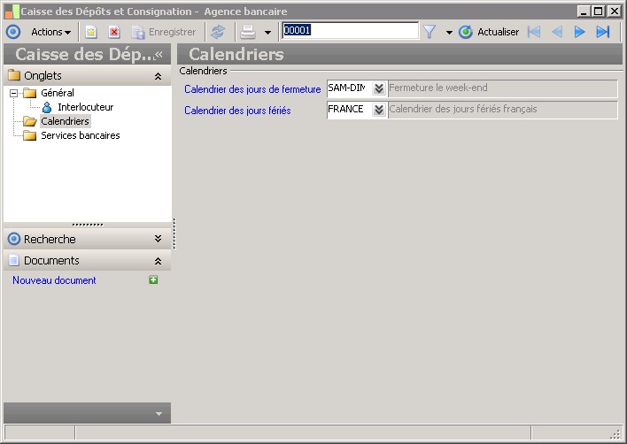 Le calendrier des jours de fermeture indique les jours de la semaine pendant lesquels l'agence est fermée. |