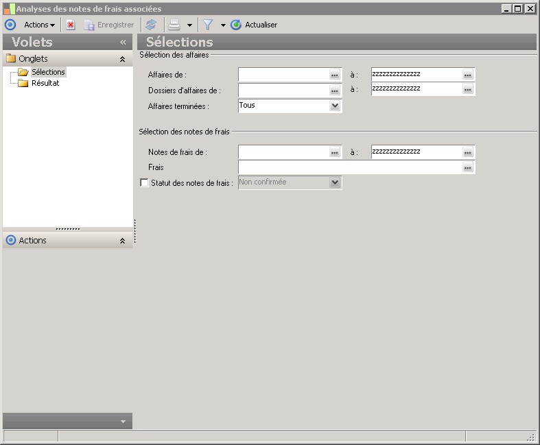 (Sage FRP 1000 Comptabilité) Menu Notes de Frais > Fichiers de base > Dossiers d'affaires > Analyses des notes de frais associées