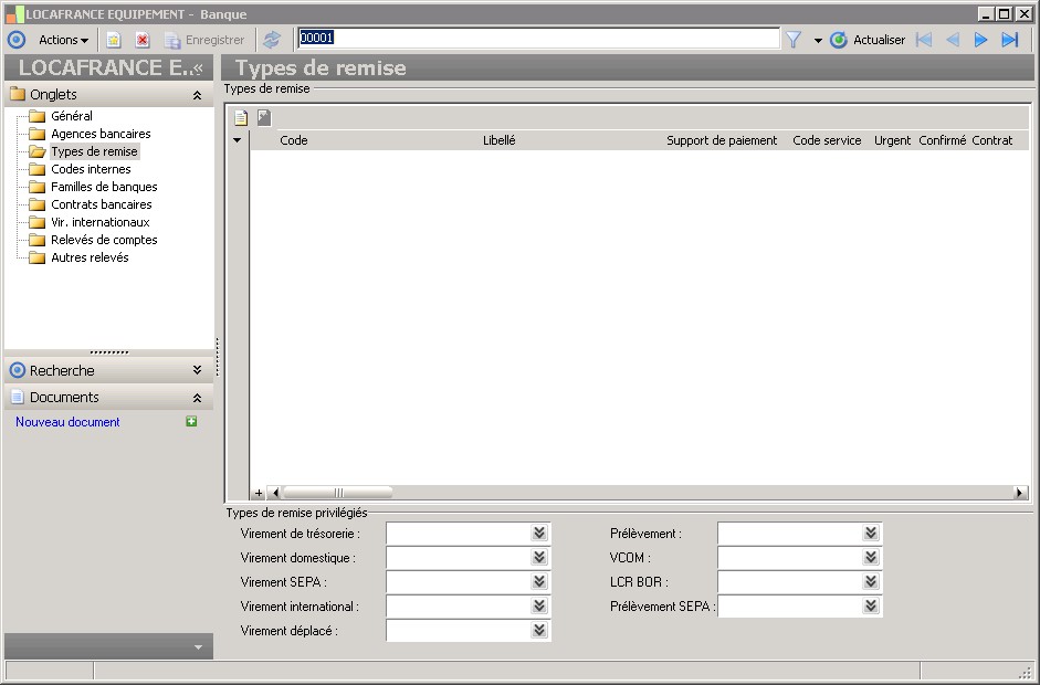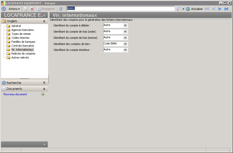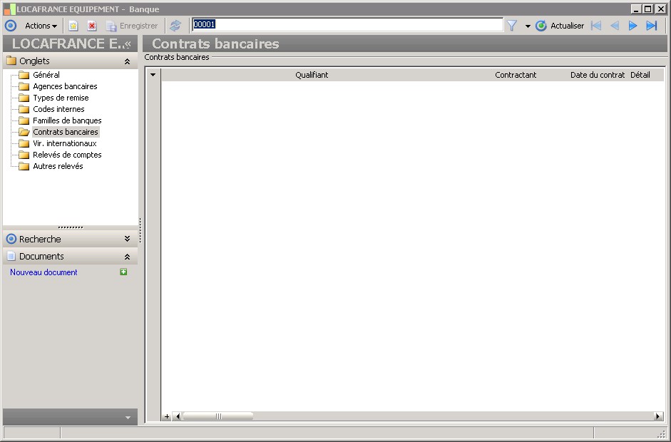 Cette classe regroupe les contrats bancaires établis avec les différentes banques des sociétés. |