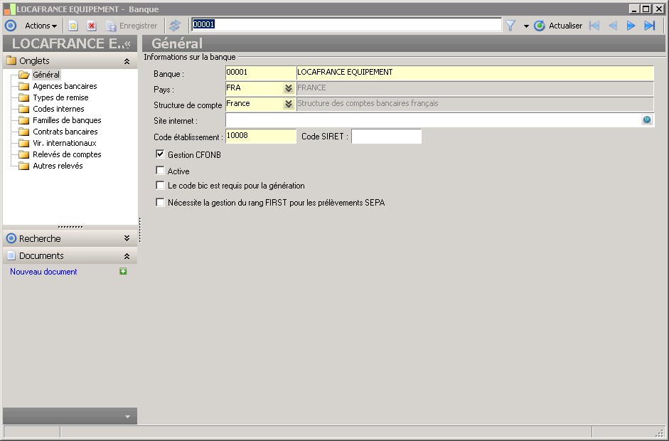 Cocher cette option permet de définir si la banque assure une gestion CFONB en émission et en réception. |