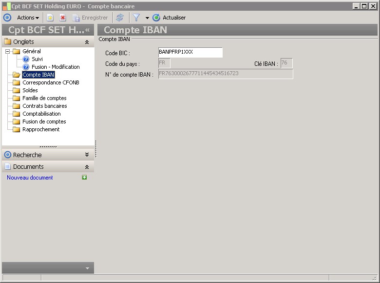 La clé IBAN permet de vérifier que le numéro de compte international a été correctement saisi. Cette zone est renseignée automatiquement par le programme en fonction du numéro de compte français ou étranger saisi. |