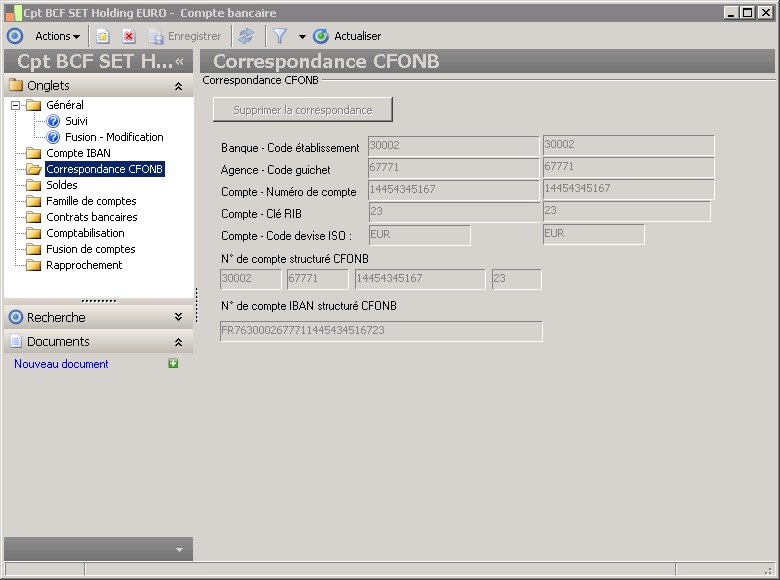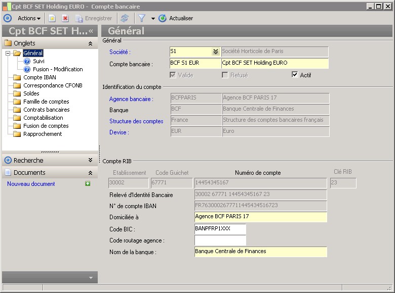 La clé RIB française permet de vérifier que le numéro de compte a été correctement saisi. Ce contrôle peut être désactivé dans la fiche agence bancaire. |