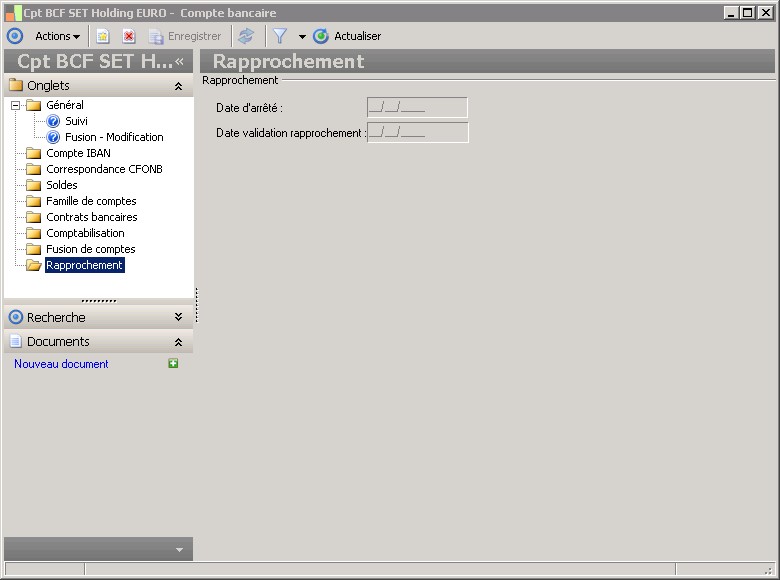 Cette zone est présente à titre informatif. Elle doit être renseignée lors de la saisie du solde initial du compte bancaire pour indiquer la date à laquelle correspond le solde. |