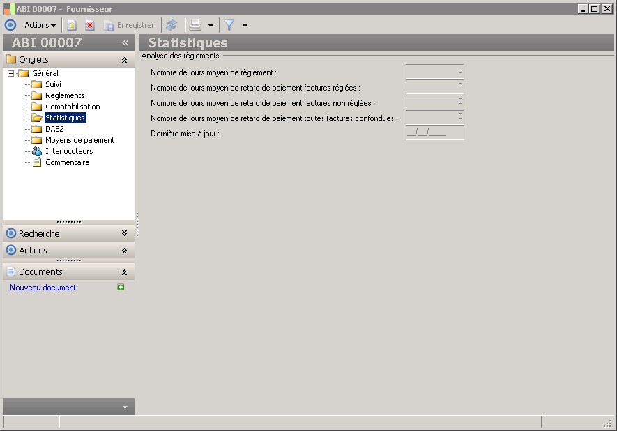 Le code d'un fournisseur ne doit pas comporter de caractère « joker » tel %, ? ou _.Cette restriction s'applique à toutes les fonctions dont les éléments sont repérés par un code. |