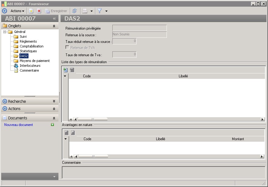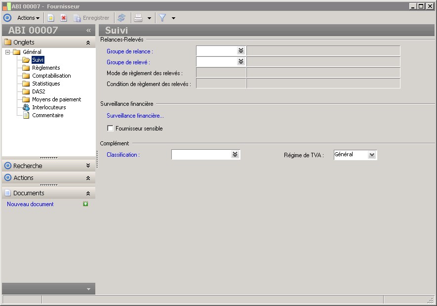 Le régime TVA doit être précisé par fournissseur pour pouvoir établir les déclarations de TVA. |