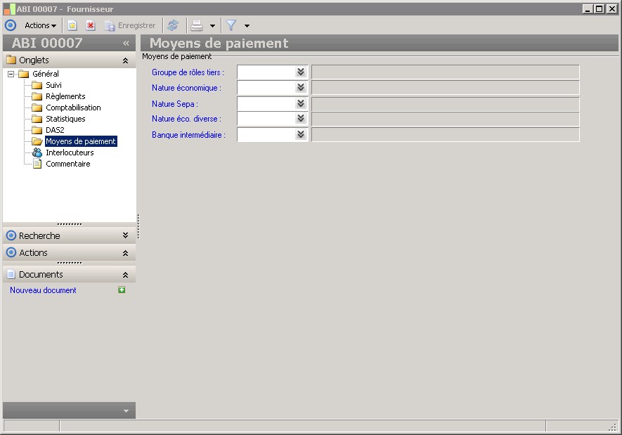Cette zone permet de renseigner la nature économique SEPA qui sera reprise par défaut pour les ordres de paiement. |