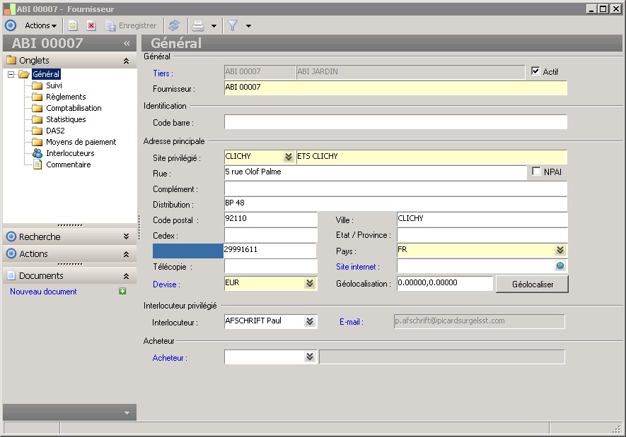 Un acheteur peut être associé au fournisseur : il s'agit d'un contact établissement ayant le rôle acheteur. |