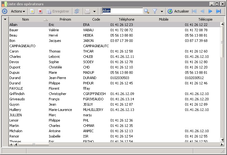 (Sage FRP 1000 Comptabilité) Menu Notes de Frais > Paramètres > Sociétés > Liste des opérateurs