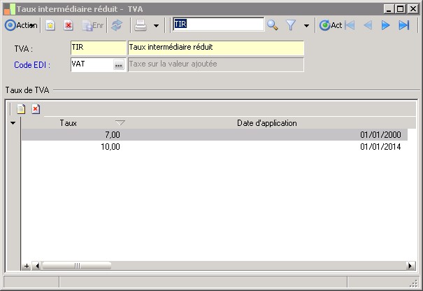 La date d'application donne la date à partir de laquelle le taux de TVA s'applique. |
