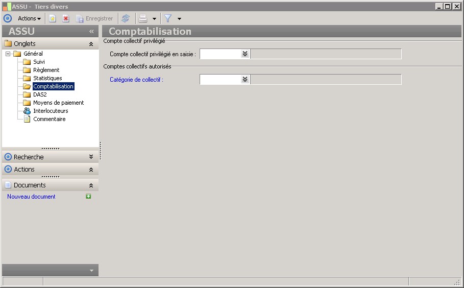 Cette zone permet d'associer une catégorie de collectifs au rôle tiers.La catégorie de collectifs définit la liste des comptes collectifs autorisés en saisie pour ce rôle tiers. Il n'est possible d'associer à un rôle tiers donné qu'une catégorie de collectifs du même type collectif que le rôle tiers ou de type collectif groupe s'il s'agit d'un tiers société.Lors de la saisie ou de l'import des écritures, il n'est pas possible de saisir sur un compte collectif non autorisé.Si l'option 'Gestion du collectif privilégié du tiers' est activée dans les paramètres comptables, la liste des comptes généraux proposée en saisie sera limitée en fonction de la catégorie de collectifs du rôle tiers s'il en possède une. |