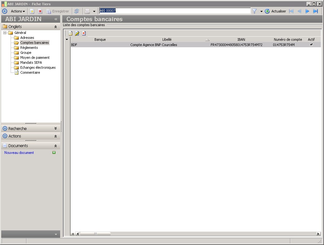 Cette information mentionne le compte bancaire du tiers utilisé par défaut pour les encaissements. |