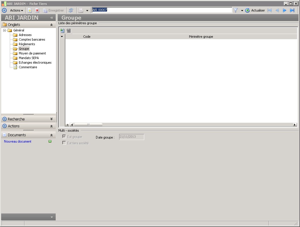 Liste des périmètres groupe |