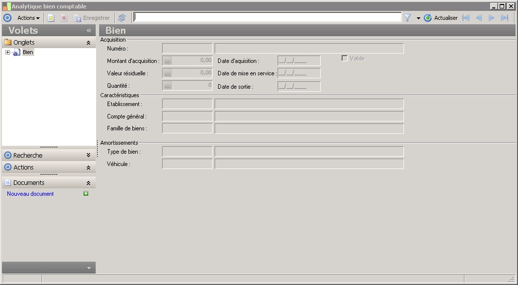 Cette zone permet d'indiquer le véhicule correpsondant au bien comptable. |