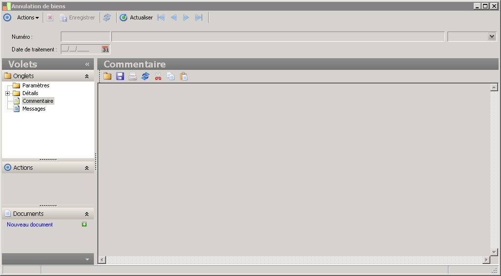 Cette zone permet de saisir un commentaire sur la pièce de mouvement. |