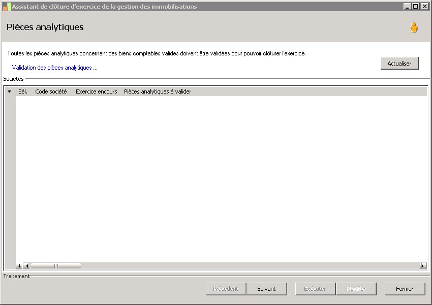 Cette zone indique le nombre de pièces analytiques à valider sur l'exercice. |