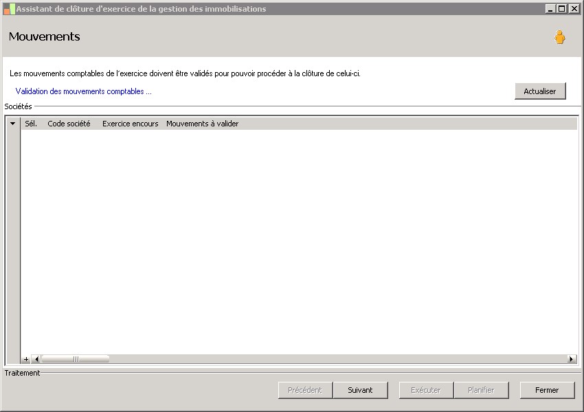 Cette zone indique qu'il existe des mouvements non validés sur la période (si la case est cochée, il n'est pas possible de clôturer l'exercice). |