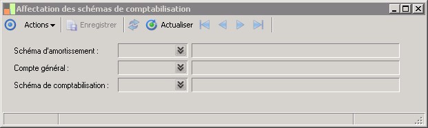 (Sage FRP 1000 Comptabilité) Menu Immobilisations > Fichiers de base > Affectation des schémas de comptabilisation