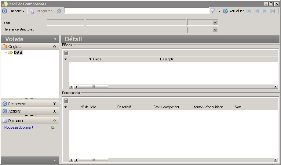 (Sage FRP 1000 Comptabilité) Menu Immobilisations > Suivi comptable > Biens > Détail des composants