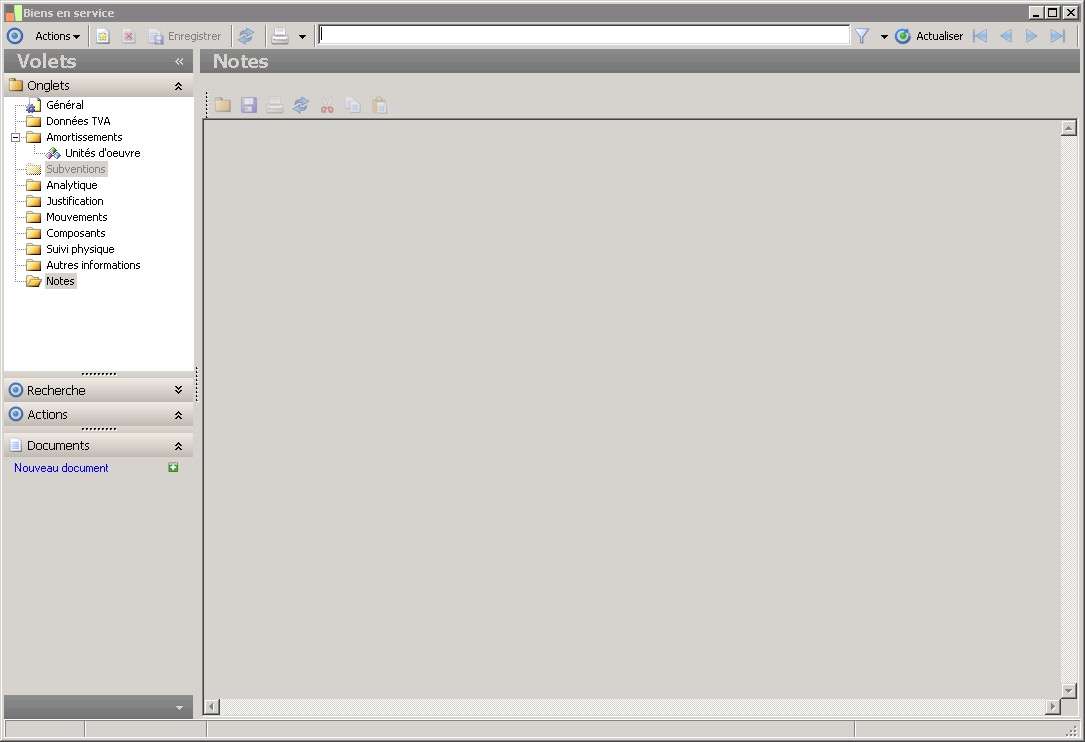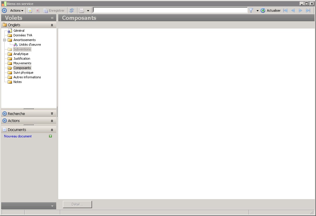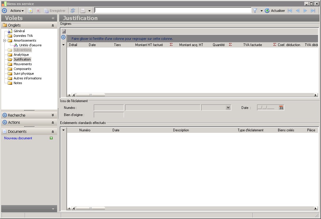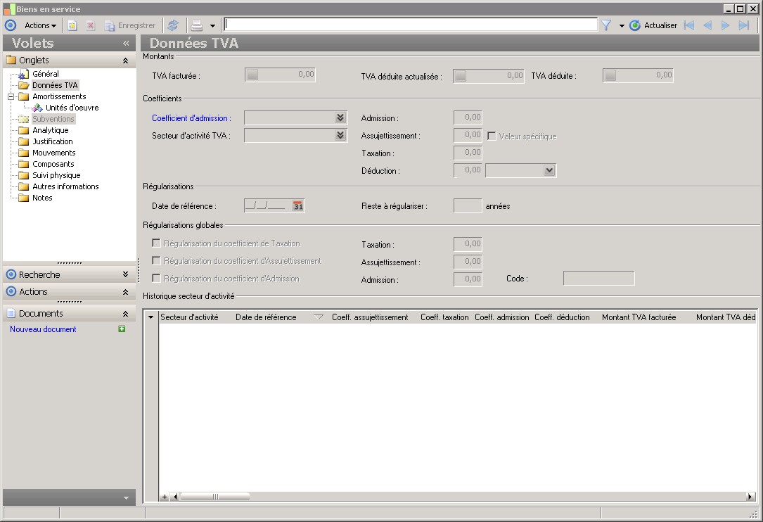 Cette zone permet d'indiquer si le bien est acquis neuf ou d'occasion. Cette information n'est plus modifiable lorsque le bien est valide. |